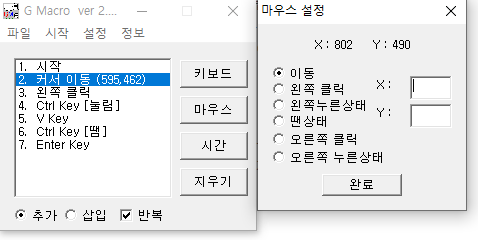 "내가 이걸 왜하고있지?" 라는 노가다 작업이 필요하시다면 이 프로그램을 쓰십시오. 무의미한 반복 일명 '노가다 작업'을 한번의 매크로로 빠르게 해결할 수 있습니다. 원래 게임매크로로 태어난 프로그램이지만 이제는 노가다작업에 최적화된 프로그램입니다. 사용법은 간단합니다. 반복되는 상황을 매크로에 기록합니다. 그리고 매크로 실행해서 잘 돌아가는지 확인합니다. 잘된다면 반복에 체크하시고 매크로를 실행하시면 됩니다. 노가다가 끝나기 전까지는 PC를 사용할 수 없는 단점이 있지만, 그래도 손으로 하는것보다는 더 편할겁니다. 중간중간 로딩이 들어간다면 시간을 클릭해 지연시간을 설정해주시면 됩니다.