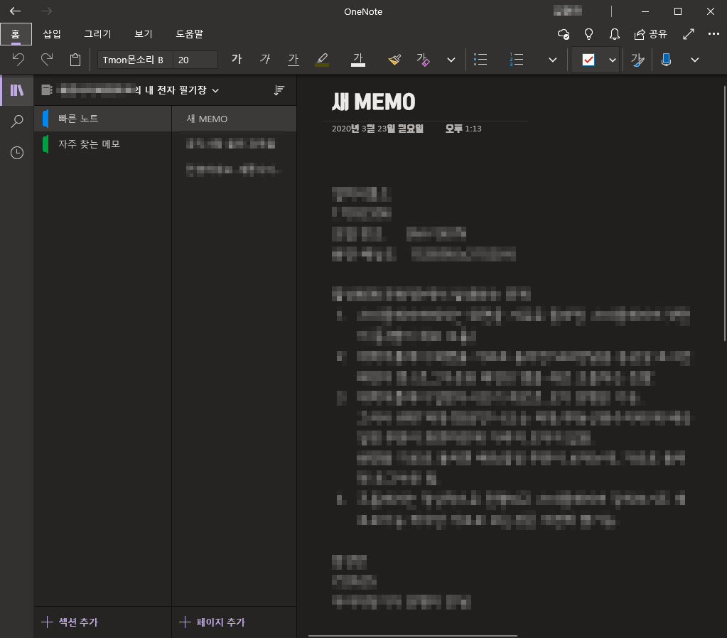 원노트는 메모앱입니다. 윈도우10에 기본탑재가 되어 있습니다. 저처럼 일할때 메모장을 켜두시고 일하시는분이 꽤 있을 겁니다. 뭔가를 메모할때 메모장만한게 없습니다. 그런데 메모장은 안좋은게 기록한걸 수동으로 저장해야되는 문제가 있습니다. 사실 메모할때 필요없다고 생각해서 저장하지 않거나 삭제하는 경우에 항상 그 메모가 필요한 경우가 생기더라구요. 그런 만일의 상황을 대비해서 메모장보다는 원노트를 사용하시는걸 추천드립니다. 저장이 필요한 메모도 여기에 입력해놓으면 됩니다. 수동으로 저장할 필요없이 자동으로 계속계속 저장됩니다. 마이크로소프트 계정이 있으시다면 로그인하여 동기화해놓으시면 언제어디서든 메모를 읽고 수정확인이 가능합니다. 다만 앱에 아직 버그가 있는데 한글 씹힘버그가 있습니다. 글 쓰다보면 한글자씩 사라지는 버그가 종종있는데 뭐 그정도는 애교로 봐주고 사용하실 만큼 좋습니다.