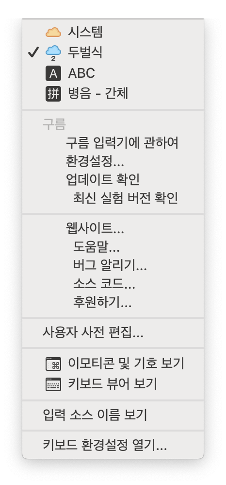 구름 입력기는 macOS를 위한 새로운 한글 입력기입니다.