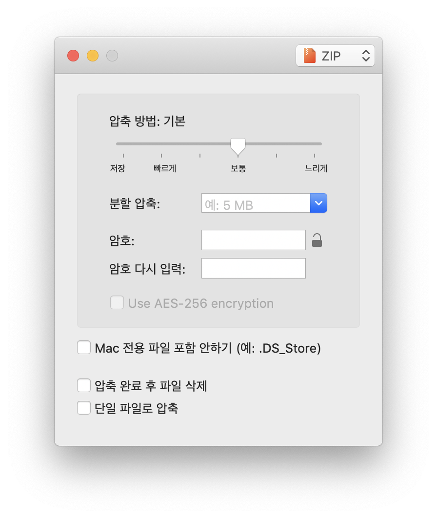 아직도 파일 크기가 너무 큰가요? 만약 파일 크기가 너무 커서 이메일 첨부 또는 서버 업로드가 불가능하다면, 분할 압축을 해보세요. 압축 해제 시 다시 원본으로 돌아옵니다. :)