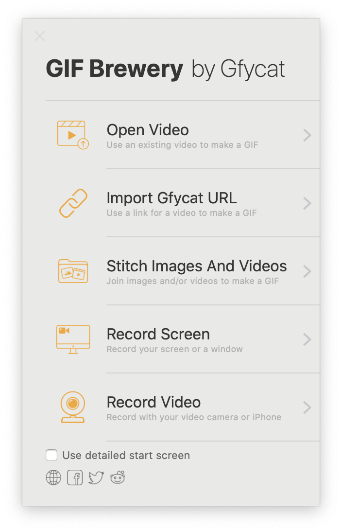 GIF Brewery by Gfycat gives everyone the power to create stunning GIFs from video files. It’s simple, powerful, intuitive to use--and now it’s free. START WITH A VIDEO • Make a screen recording • Record from your webcam or iOS device • Import a video file