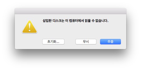 장치를 꽂으면 삽입한 디스크는 이 컴퓨터에서 읽을 수 없습니다 라는메세지가 뜹니다.